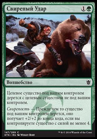Темур — красно-сине-зелёный. Свирепость. Карты со свирепостью получают бонус, когда у вас под контролем есть существа с силой четыре или больше.