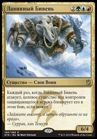 Ещё в своих Темурах я бы хотел видеть карту Рев Вызова. Два очевидных варианта использования – «все на большого», чтобы он их потоптал и «все на маленького», пока большие существа дотаптывают оппонента. И оба варианта смотрятся неимоверно хорошо.