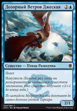 Кроме указанного ифрита, лучшее, что может дать Джескай со своей Искустностью – это Дозорный Ветров Джеская. Очень хорошее существо, но не способное помочь клановой идее сразу. Хорошая карта, но ей до 4-й атаки нужно целых два заклинания.