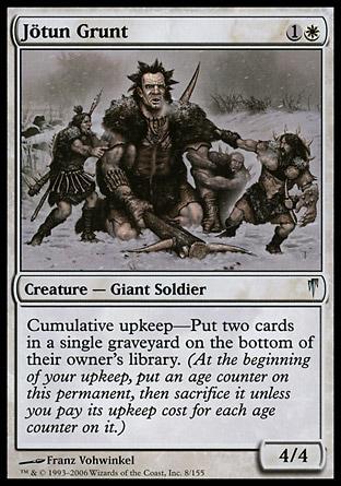 • Dredge. В первой партии мы можем выиграть за счет быстро найденной Umezawa's Jitte (любое наше умершее существо убирает из кладбища Bridge from Below). Но шансов мало, только если у Вас в мейне нет Jotun Grunt или Containment Priest. Последующие партии целиком и полностью зависят от наличия у нас карт для борьбы с вражеским кладбищем – Rest in Peace и Relic of Progenitus.