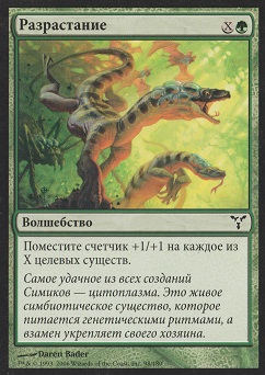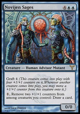 Это сочетание мне нравится больше всего. Свойства, которые разработчики разместили в этих цветах, отлично подходят друг к другу: жетоны +1/+1 раскладываем с graft и bloodthirst, жетоны -1/-1 получаются с wither и карт черного ремувала, добавляем sunburst, charge counters и всё это распространяем. Два мироходца в издании также содержат жетоны, которые можно с успехом размножить. Очень важным существом в нашем UB является