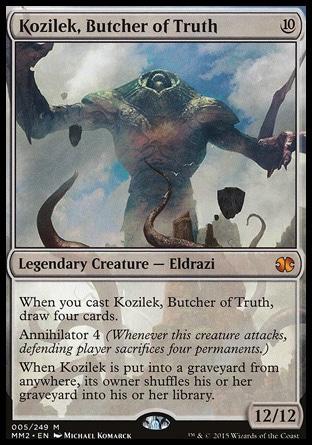 . Наличие таких карт позволяет осторожно играть Эльдрази-существами и, если повезёт, на четвёртый ход у вас будет пугать оппонентов какой-нибудь Ulamog's Crusher. Но только прошу, не играйте таким: Emrakul, the Aeons Torn – существо за пятнадцать ман всё равно смотрится тяжеловато, а нечестных способов поставить Эмракула на стол в формате не издано.