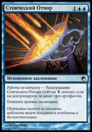 и ряд других артефактов, которые вы хотите наполнять жетонами, позволят со смыслом использовать metalcraft и affinity от синего цвета. Кроме того, если у оппонента вдруг оказалось существо с persist, то его можно «добить», распространив дополнительный жетон -1/-1. Игре в режиме классического UB-контроля помогают карты отмены: