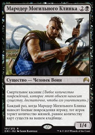 Лимитед: 4+. Учитывая способности черных скидывать себе карты в кладбище, мародер может достаточно рано начать пробегать на сильно большее количество хитов, чем один. А в защите ему вообще равных нет.