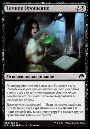 и тоже очень даже неплохая, вот только нужно найти способ быстро убить своё существо. А вот в этом у черного цвета недостатка нет и дальше начинается синергия. Лилиана набивает кладбище, скидывая карты вам и оппоненту, но вам, как чёрным, это полезнее. Может сразу выкопать кого-нибудь небольшого, или покопить на существо побольше. Очень неплохая эмблема. А главное — если Лилиану потерять, именно чёрный цвет специализируется на подъёме своих существ с кладбища.
