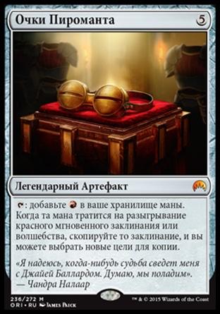 Констрактед: 4. Хорошая карта, правда манакост несколько смущает, но для эффекта этого артефакта это вполне оправданная цена. Такую хотелось бы положить в быстрый бурнец, но пять ман — это непозволительная стоимость. Можно подумать о красном девоушене или вообще о каком-то контроле, ведь копировать можно любое заклинание. Жаль что только красного цвета.