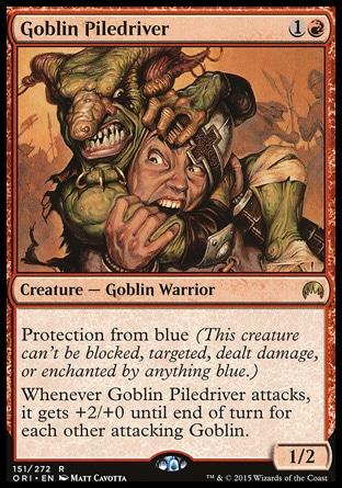 Лимитед: 3+. Теперь мы знаем — как переводится Piledriver на русский язык. Старая отличная карта из «вечных» форматов, не делает такого же шороха в лимитед. Карт для гоблинов всего пять (вместе с забойщиком) и только три из них частые, а синий цвет — точно не самый угрожающий жизни этого гоблина. Впрочем, если повезет, может получиться колода последовательно показывающая
