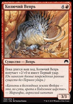 Лимитед: 3-. Отличное существо в ультра агро и не очень для остальных. Зато, если уж он вышел на первый ход, хитов 5-7 списать может из-за «угрозы».