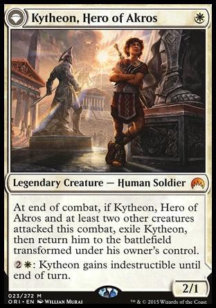 В конце боя, если Китеон, Герой Акроса и не менее двух других существ атаковали в этом бою, изгоните Китеона, затем верните его на поле битвы трансформированным под контролем его владельца.