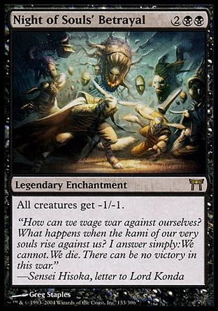 Выберите одно — все существа получают -1/-1 до конца хода; или уничтожьте целевые чары; или регенерируйте каждое существо под вашим контролем.