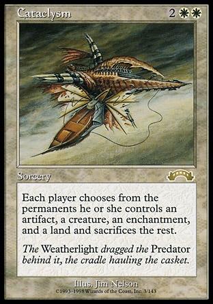 Each player chooses from among the permanents he or she controls an artifact, a creature, an enchantment, and a land, then sacrifices the rest.