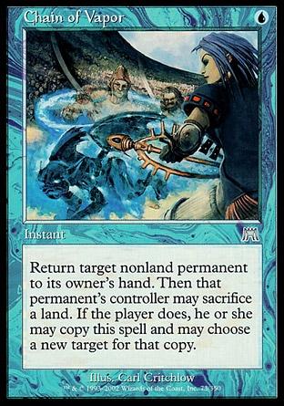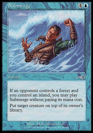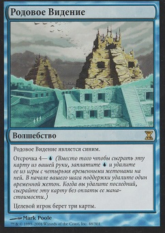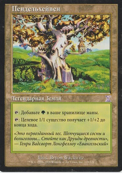 , заплатите 1 жизнь, пожертвуйте Туманную Сельву: найдите в вашей библиотеке карту Леса или Острова и положите ее на поле битвы. Затем перетасуйте вашу библиотеку.