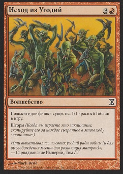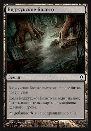 , заплатите 1 жизнь, пожертвуйте Кровавую Топь: найдите в вашей библиотеке карту Болота или Горы и положите ее на поле битвы. Затем перетасуйте вашу библиотеку.