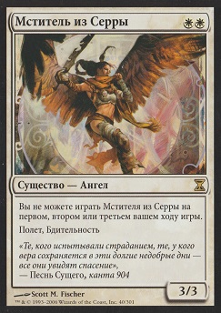 Вы не можете разыгрывать Мстителя из Серры во время вашего первого, второго и третьего хода текущей партии.