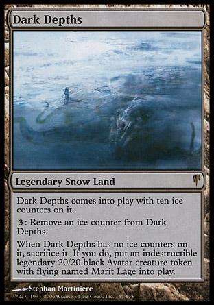 Когда на Темных пучинах не останется ледяных счетчиков, пожертвуйте Темные пучины. Если вы это сделаете, введите в игру фишку неуничтожимого легендарного черного существа Аватара 20/20 по имени Марит Лейдж со способностью Полет.