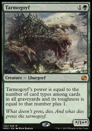 Сила Тармогойфа равна количеству типов карт среди карт на всех кладбищах, а его выносливость на 1 больше этого числа. (Типы карт: артефакт, существо, чары, мгновенное заклинание, земля, мироходец, волшебство и племенной.)