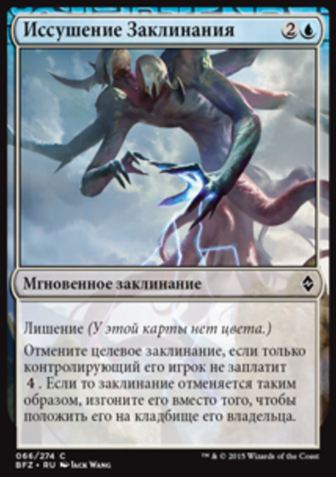 Отмените целевое заклинание существа с конвертированной мана-стоимостью не более 4. Если то заклинание отменяется таким образом, изгоните его вместо того, чтобы положить его на кладбище его владельца.