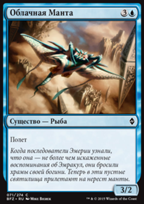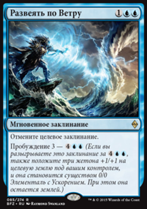 Землепад — Каждый раз, когда земля выходит на поле битвы под вашим контролем, Волнокрылый Элементаль получает +2/+2 до конца хода.
