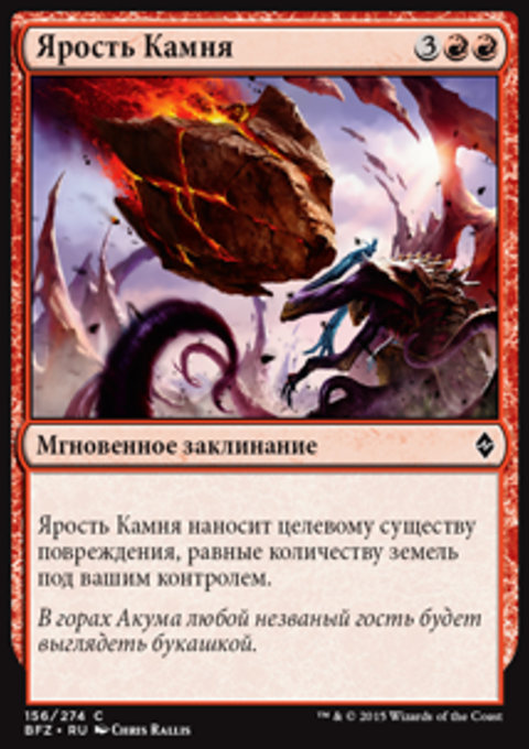 Ярость Камня наносит целевому существу повреждения, равные количеству земель под вашим контролем.