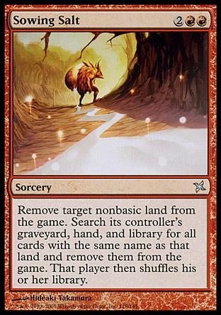 Exile target nonbasic land. Search its controller's graveyard, hand, and library for all cards with the same name as that land and exile them. Then that player shuffles his or her library.