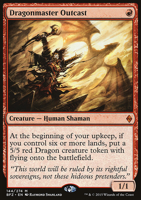 В начале вашего шага поддержки, если под вашим контролем есть не менее шести земель, положите на поле битвы одну фишку существа 5/5 красный Дракон с Полетом.