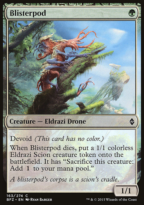 Когда Пузырчатый Кокон умирает, положите на поле битвы одну фишку существа 1/1 бесцветный Эльдрази Отпрыск. Она имеет способность «Пожертвуйте это существо: добавьте