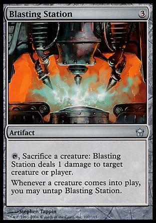 , Sacrifice a creature: Blasting Station deals 1 damage to target creature or player.