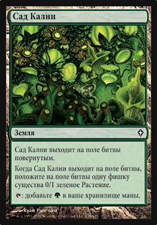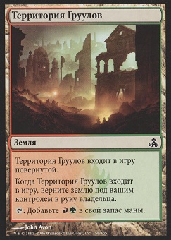 Каждый раз когда Первобытный Титан выходит на поле битвы или атакует, вы можете найти в вашей библиотеке не более двух карт земель, положить их на поле битвы повернутыми, затем перетасовать вашу библиотеку.