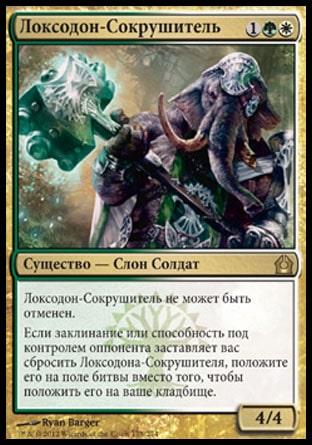 Если заклинание или способность под контролем оппонента заставляет вас сбросить Локсодона-Сокрушителя, положите его на поле битвы вместо того, чтобы положить его на ваше кладбище.