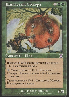 : изгоните целевую карту из кладбища. Если это была карта существа, положите один жетон +1/+1 на Трупоедную Слизь, и вы получаете 1 жизнь.