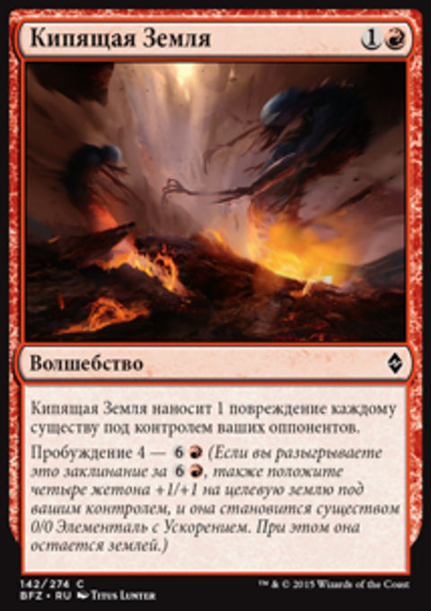 , сбросьте карту земли: Расплавленный Вихрь наносит 2 повреждения целевому существу или игроку.