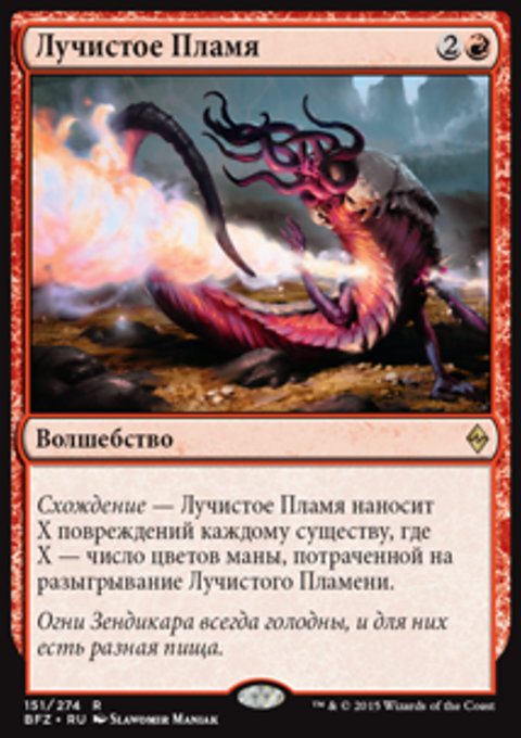 Мастерство заклинаний — Если на вашем кладбище есть не менее двух карт мгновенных заклинаний и (или) волшебства, Изысканное Мастерство Пламени не может быть отменено заклинаниями или способностями.