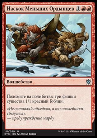 Положите на поле битвы две фишки существа 1/1 красный Гоблин.