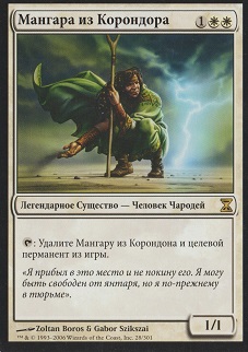 Назовите карту, не являющуюся землей. Найдите на кладбище, в руке и в библиотеке целевого оппонента любое количество карт с тем именем и изгоните их. Затем тот игрок тасует свою библиотеку.