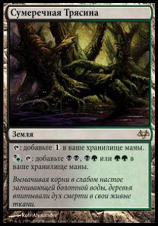 , заплатите 1 жизнь, пожертвуйте Кровавую Топь: найдите в вашей библиотеке карту Болота или Горы и положите ее на поле битвы. Затем перетасуйте вашу библиотеку.