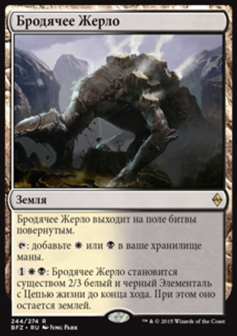 : Бродячее Жерло становится существом 2/3 белый и черный Элементаль с Цепью жизни до конца хода. При этом оно остается землей.