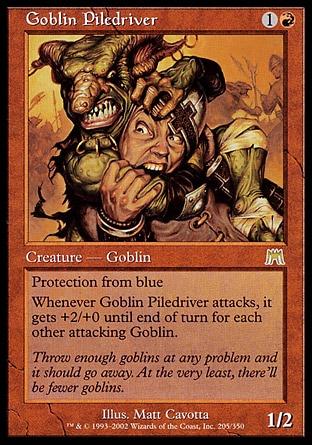 Каждый раз, когда Гоблин-Забойщик атакует, он получает +2/+0 до конца хода за каждого другого атакующего Гоблина.