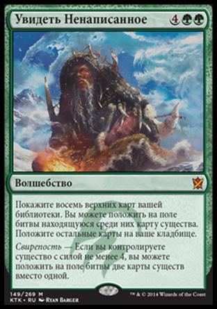 Покажите восемь верхних карт вашей библиотеки. Вы можете положить на поле битвы находящуюся среди них карту существа. Положите остальные карты на ваше кладбище.