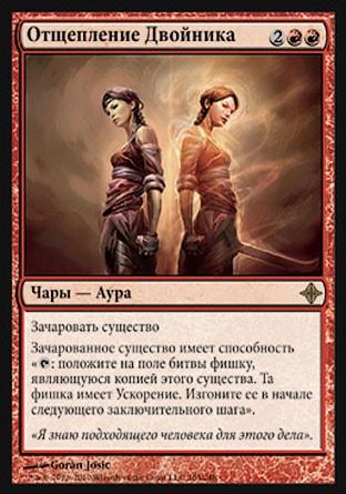: положите на поле битвы фишку, являющуюся копией этого существа. Та фишка имеет Ускорение. Изгоните ее в начале следующего заключительного шага».