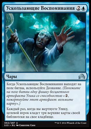 Когда Ускользающие Воспоминания выходят на поле битвы, используйте Дознание. (Положите на поле битвы одну фишку бесцветного артефакта Улика со способностью «