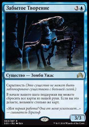 Когда Фонарщик из Селхоффа выходит на поле битвы, если под вашим контролем есть другой Зомби, вы можете взять карту. Если вы это делаете, сбросьте карту.
