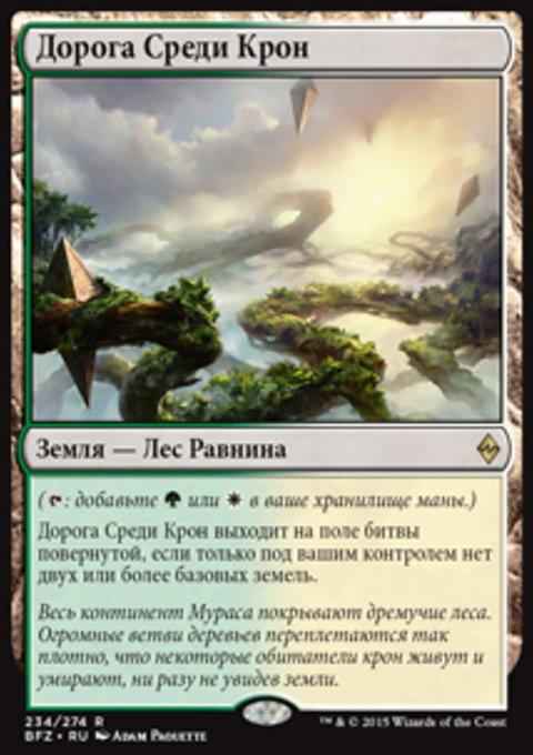 Когда Нисса, Провидица Широколесья выходит на поле битвы, вы можете найти в вашей библиотеке карту базового Леса, показать ее, положить ее в вашу руку, затем перетасовать вашу библиотеку.