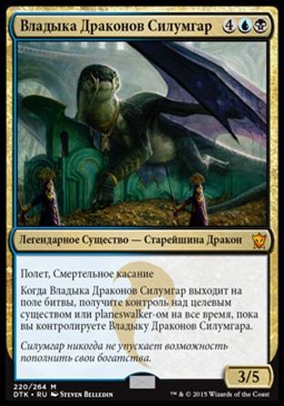 Когда Владыка Драконов Силумгар выходит на поле битвы, получите контроль над целевым существом или planeswalker-ом на все время, пока вы контролируете Владыку Драконов Силумгара.