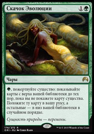, пожертвуйте существо: показывайте карты с верха вашей библиотеки до тех пор, пока вы не покажете карту существа. Положите ту карту в вашу руку, а остальные — в низ вашей библиотеки в случайном порядке.