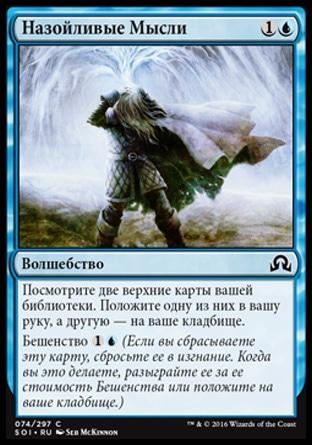 Каждый раз, когда вы разыгрываете мгновенное заклинание или заклинание волшебства, предскажите 1. (Посмотрите верхнюю карту вашей библиотеки. Вы можете положить ту карту в низ вашей библиотеки.)