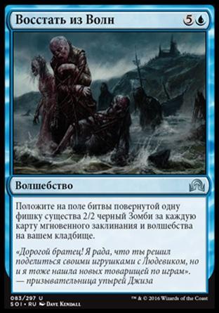 Положите на поле битвы повернутой одну фишку существа 2/2 черный Зомби за каждую карту мгновенного заклинания и волшебства на вашем кладбище.