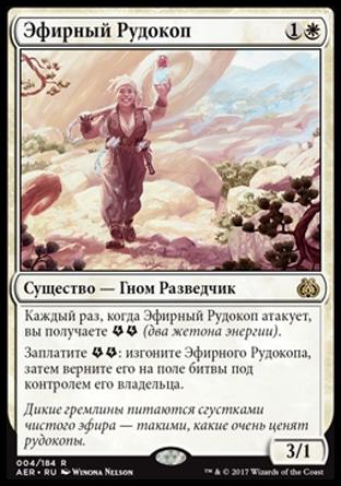 Каждый раз, когда Эфирный Рудокоп атакует, вы получаете {Energy}{Energy} (два жетона энергии).