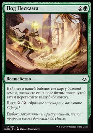 , изгоните карту земли из вашего кладбища: Враждебная Пустыня становится существом 3/4 Элементаль до конца хода. При этом она остается землей.