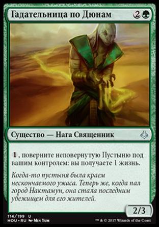 , пожертвуйте Пустыню: существа под вашим контролем получают +1/+1 до конца хода. Активируйте эту способность только при возможности разыгрывать волшебство.