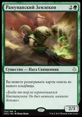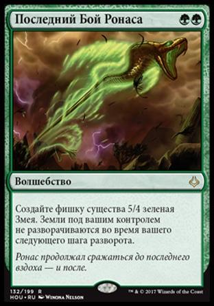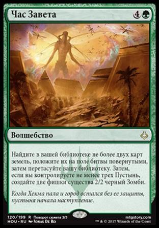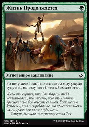 Когда Громыхающий Вурм выходит на поле битвы, предскажите 3, затем покажите верхнюю карту вашей библиотеки. Вы получаете количество жизней, равное конвертированной мана-стоимости той карты.